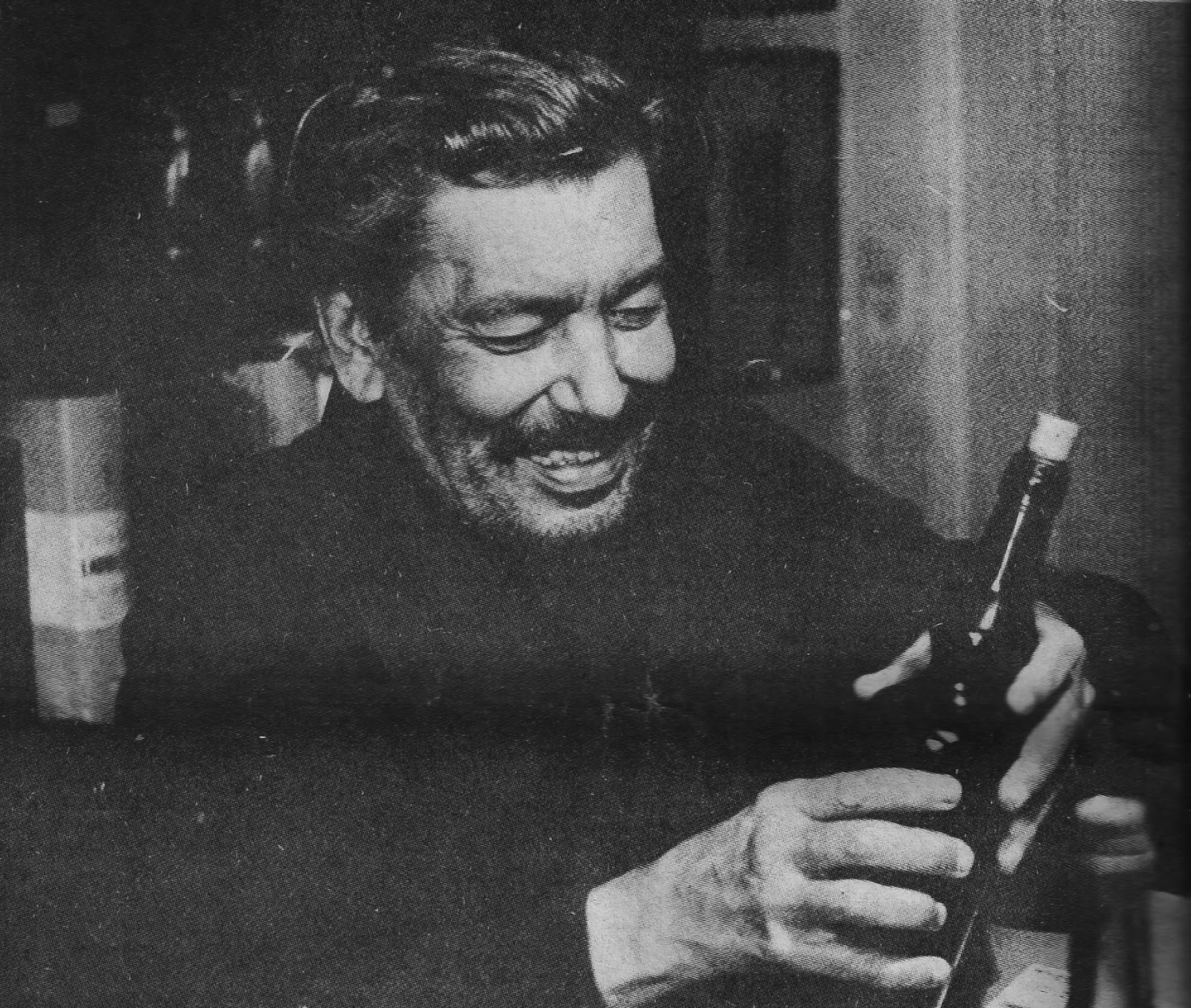 A noite na biblioteca é consumida no silêncio da leitura, entremeada com o leve ruído das sucessivas doses de uísque (que bebe a caubói) ou com o barulho da pena rombuda da velha Parker 51, anotando trechos ou gravando situações que irão compor um próximo romance. Só escreve à mão: “assim me sinto mais ligado ao que estou escrevendo. Além de péssimo datilógrafo, a máquina me distancia das coisas, da densidade dos corpos”. “Nada vale nada com algemas”, diz no poema impublicável que nos mandou. Mas de qualquer forma, em Cataguases – no início e origem de tudo, na volta ao útero, trazendo da França Annie, a mulher que entre todas e tantas ficou para sempre (para sempre mesmo: devido a problemas com a separação de uma de suas ex-mulheres, Fusco talvez seja recorde mundial de casamento com a mesma mulher: duas vezes em Paris, duas no Uruguai e a última em Cataguases, onde funcionou como padrinho o próprio François, filho do casal) – apesar das algemas do Doutor Fróes (como ele gosta de dizer, brincando), Fusco consegue se equilibrar. Nós é que titubeamos un peu. Afinal, o homem é incrível: doses sucessivas de uísque, pernod, cinzano com gin (é uma mistura dos diabos!), campari & etc, somadas a um vermute “que vai muito bem”. Tudo isso entremeado com scargots, patê truffée & outros babados, quase sempre à francesa, preparados pela Annie ou pelo próprio, que também manda seu recado nas culinárias da vida.